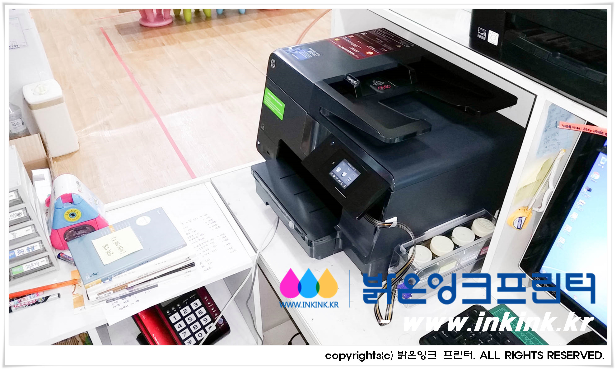 µ¿´ë¹®¿¡ À§Ä¡ÇÑ Çϳª¾î¸°ÀÌÁý¿¡ HP OFFICEJET 8610 ¹«ÇÑÀ×Å© º¹Çձ⸦ ¼³Ä¡ÇØ µå¸°µÚ, º¹Çձ⸦ Ä«¸Þ¶ó¿¡ ´ã¾ÆºÃ½À´Ï´Ù. ¹àÀºÀ×Å© ÇÁ¸°Å͸¦ ±¸ÀÔÇØ ÁֽŠ°í°´´Ô²² ±íÀº °¨»çµå¸®¸ç, Á¤Á÷ÇÑ Á¦Ç°, ¿Ã¹Ù¸¥ ¼ºñ½º·Î °í°´´ÔÀÇ ¹ÏÀ½¿¡ º¸´äÇϰڽÀ´Ï´Ù.