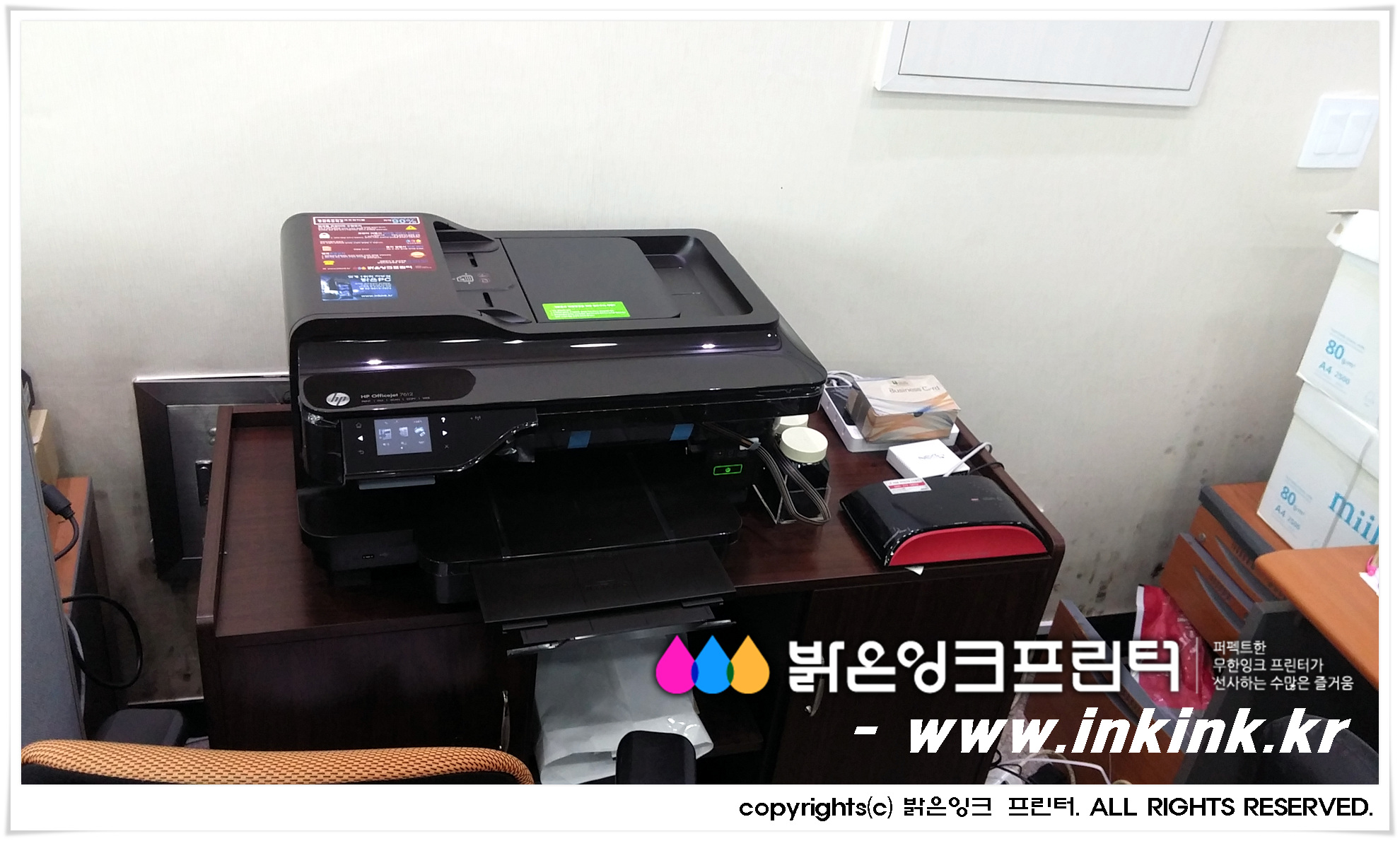 ÆòÅÿ¡ À§Ä¡ÇÑ ´ë¿µÀü±â¿¡ HP OFFICEJET 7612 A3 ¹«ÇÑÀ×Å© º¹Çձ⸦ ¼³Ä¡ÇØ µå¸°µÚ, º¹Çձ⸦ Ä«¸Þ¶ó¿¡ ´ã¾ÆºÃ½À´Ï´Ù. ¹àÀºÀ×Å© ÇÁ¸°Å͸¦ ±¸ÀÔÇØ ÁֽŠ°í°´´Ô²² ±íÀº °¨»çµå¸®¸ç, Á¤Á÷ÇÑ Á¦Ç°, ¿Ã¹Ù¸¥ ¼ºñ½º·Î °í°´´ÔÀÇ ¹ÏÀ½¿¡ º¸´äÇϰڽÀ´Ï´Ù.