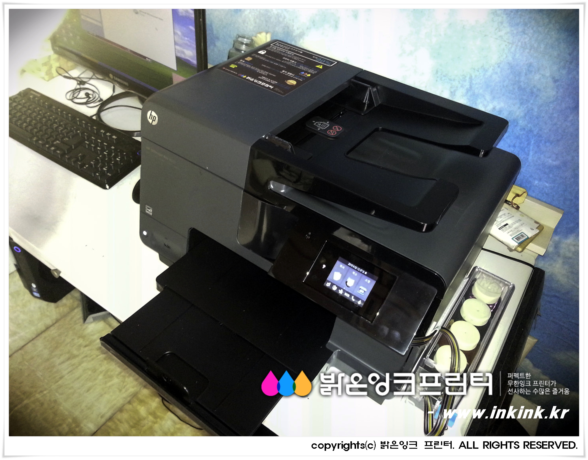µµºÀ±¸¿¡ À§Ä¡ÇÑ ´Ù¿¬¿¡ HP OFFICEJET 8610 ¹«ÇÑÀ×Å© º¹Çձ⸦ ¼³Ä¡ÇØ µå¸°µÚ, º¹Çձ⸦ Ä«¸Þ¶ó¿¡ ´ã¾ÆºÃ½À´Ï´Ù. ¹àÀºÀ×Å© ÇÁ¸°Å͸¦ ±¸ÀÔÇØ ÁֽŠ°í°´´Ô²² ±íÀº °¨»çµå¸®¸ç, Á¤Á÷ÇÑ Á¦Ç°, ¿Ã¹Ù¸¥ ¼ºñ½º·Î °í°´´ÔÀÇ ¹ÏÀ½¿¡ º¸´äÇϰڽÀ´Ï´Ù.