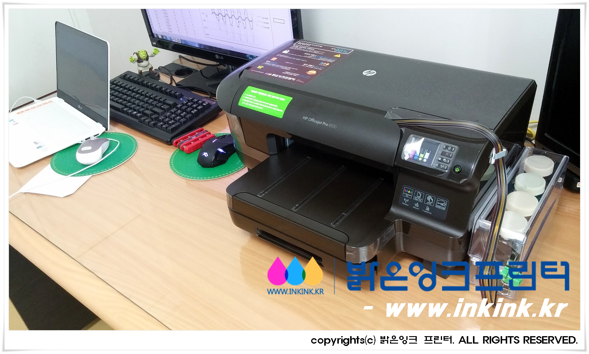 ¿ëÀο¡ À§Ä¡ÇÑ ±èöÁØ °í°´ÀÇ´ì¿¡ HP OFFICEJET 8100 ¹«ÇÑÀ×Å© ÇÁ¸°Å͸¦ ¼³Ä¡ÇØ µå¸°µÚ, ÇÁ¸°Å͸¦ Ä«¸Þ¶ó¿¡ ´ã¾ÆºÃ½À´Ï´Ù. ¹àÀºÀ×Å© ÇÁ¸°Å͸¦ ±¸ÀÔÇØ ÁֽŠ°í°´´Ô²² ±íÀº °¨»çµå¸®¸ç, Á¤Á÷ÇÑ Á¦Ç°, ¿Ã¹Ù¸¥ ¼ºñ½º·Î °í°´´ÔÀÇ ¹ÏÀ½¿¡ º¸´äÇϰڽÀ´Ï´Ù.