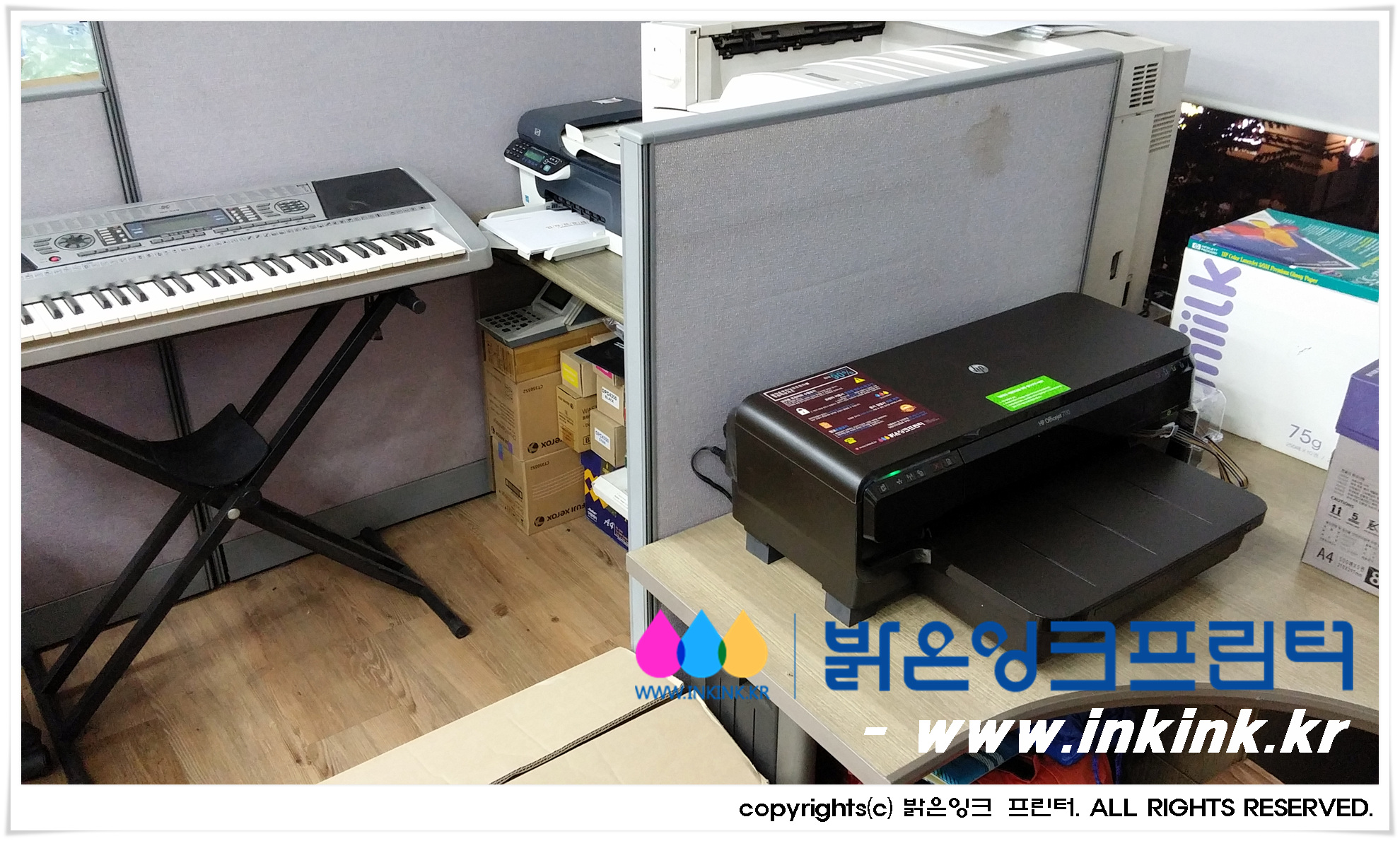 º¹Á¤µ¿¿¡ À§Ä¡ÇÑ ÆäÆäµðÀÚÀο¡ HP OFFICEJET 7110 A3 ¹«ÇÑÀ×Å© ÇÁ¸°Å͸¦ ¼³Ä¡ÇØ µå¸°µÚ, ÇÁ¸°Å͸¦ Ä«¸Þ¶ó¿¡ ´ã¾ÆºÃ½À´Ï´Ù. ¹àÀºÀ×Å© ÇÁ¸°Å͸¦ ±¸ÀÔÇØ ÁֽŠ°í°´´Ô²² ±íÀº °¨»çµå¸®¸ç, Á¤Á÷ÇÑ Á¦Ç°, ¿Ã¹Ù¸¥ ¼ºñ½º·Î °í°´´ÔÀÇ ¹ÏÀ½¿¡ º¸´äÇϰڽÀ´Ï´Ù.