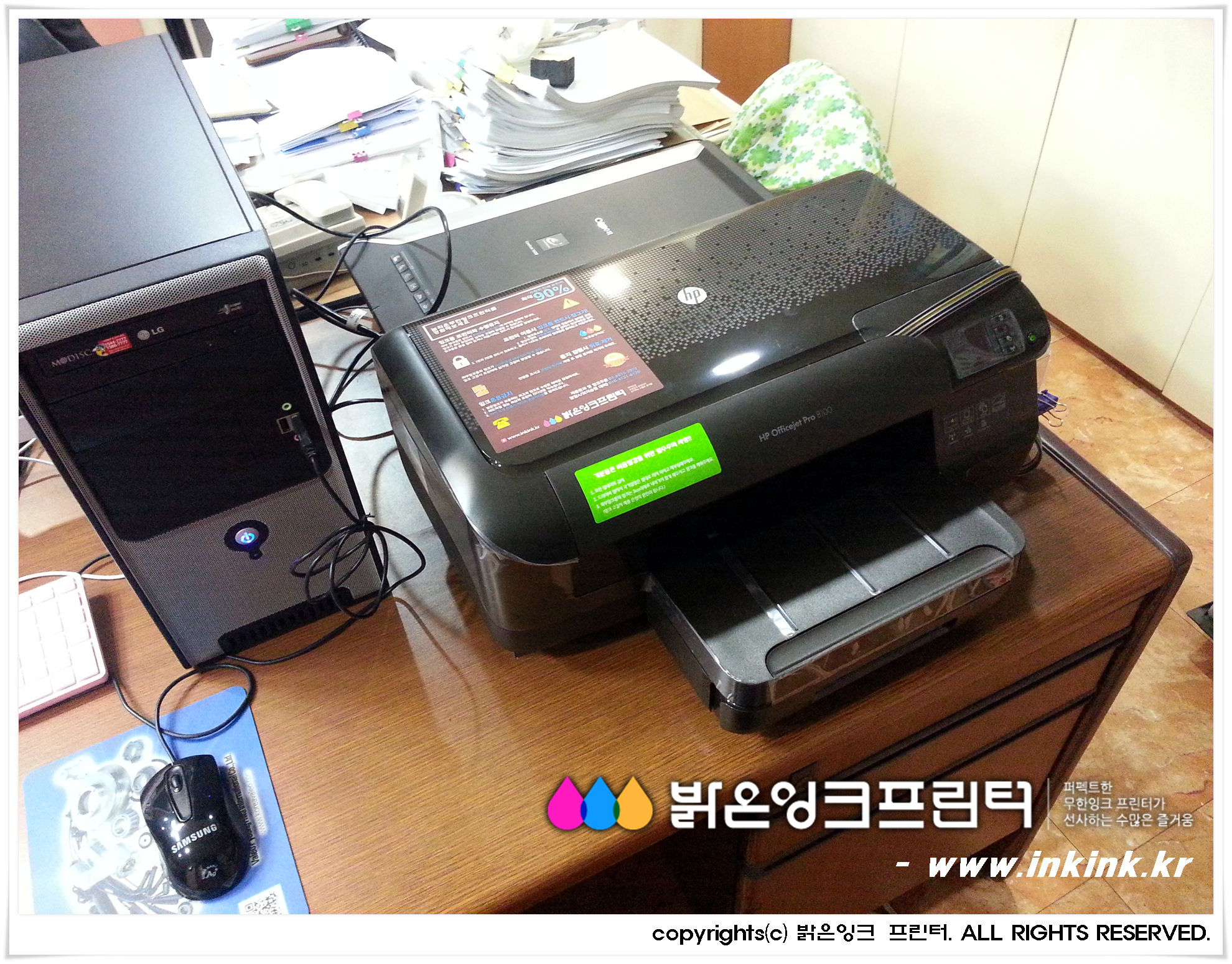 ½Ö¹®µ¿¿¡ À§Ä¡ÇÑ ±Øµ¿±â¾÷»ç¿¡ HP OFFICEJET 8100 ¹«ÇÑÀ×Å© ÇÁ¸°Å͸¦ ¼³Ä¡ÇØ µå¸°µÚ, ÇÁ¸°Å͸¦ Ä«¸Þ¶ó¿¡ ´ã¾ÆºÃ½À´Ï´Ù. ¹àÀºÀ×Å© ÇÁ¸°Å͸¦ ±¸ÀÔÇØ ÁֽŠ°í°´´Ô²² ±íÀº °¨»çµå¸®¸ç, Á¤Á÷ÇÑ Á¦Ç°, ¿Ã¹Ù¸¥ ¼ºñ½º·Î °í°´´ÔÀÇ ¹ÏÀ½¿¡ º¸´äÇϰڽÀ´Ï´Ù.