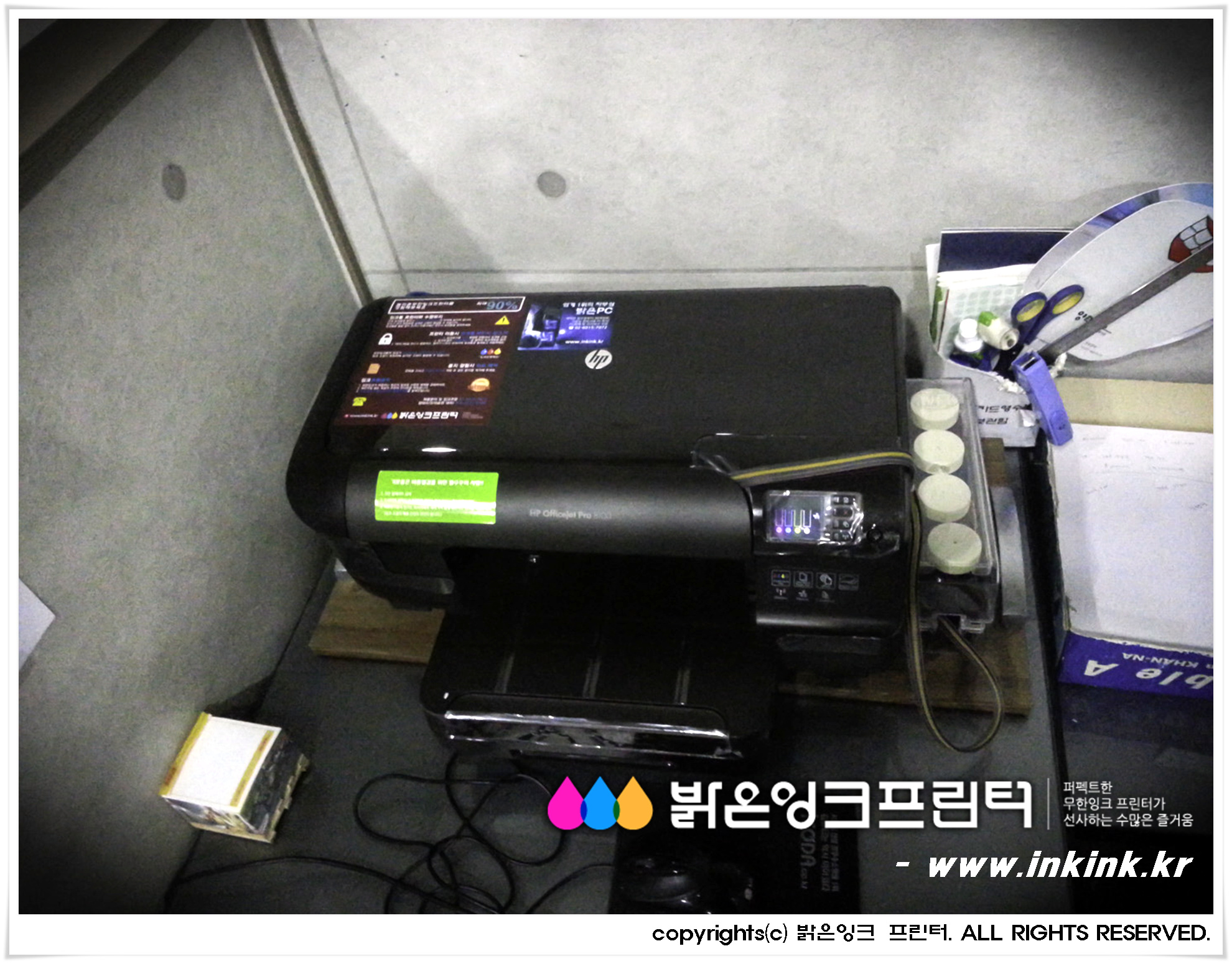 ¼ÒÇϵ¿¿¡ À§Ä¡ÇÑ ¿ìÁÖÇÏÀÌÅØ¿¡ HP OFFICEJET 8100 ¹«ÇÑÀ×Å© ÇÁ¸°Å͸¦ ¼³Ä¡ÇØ µå¸°µÚ, ÇÁ¸°Å͸¦ Ä«¸Þ¶ó¿¡ ´ã¾ÆºÃ½À´Ï´Ù. ¹àÀºÀ×Å© ÇÁ¸°Å͸¦ ±¸ÀÔÇØ ÁֽŠ°í°´´Ô²² ±íÀº °¨»çµå¸®¸ç, Á¤Á÷ÇÑ Á¦Ç°, ¿Ã¹Ù¸¥ ¼ºñ½º·Î °í°´´ÔÀÇ ¹ÏÀ½¿¡ º¸´äÇϰڽÀ´Ï´Ù.