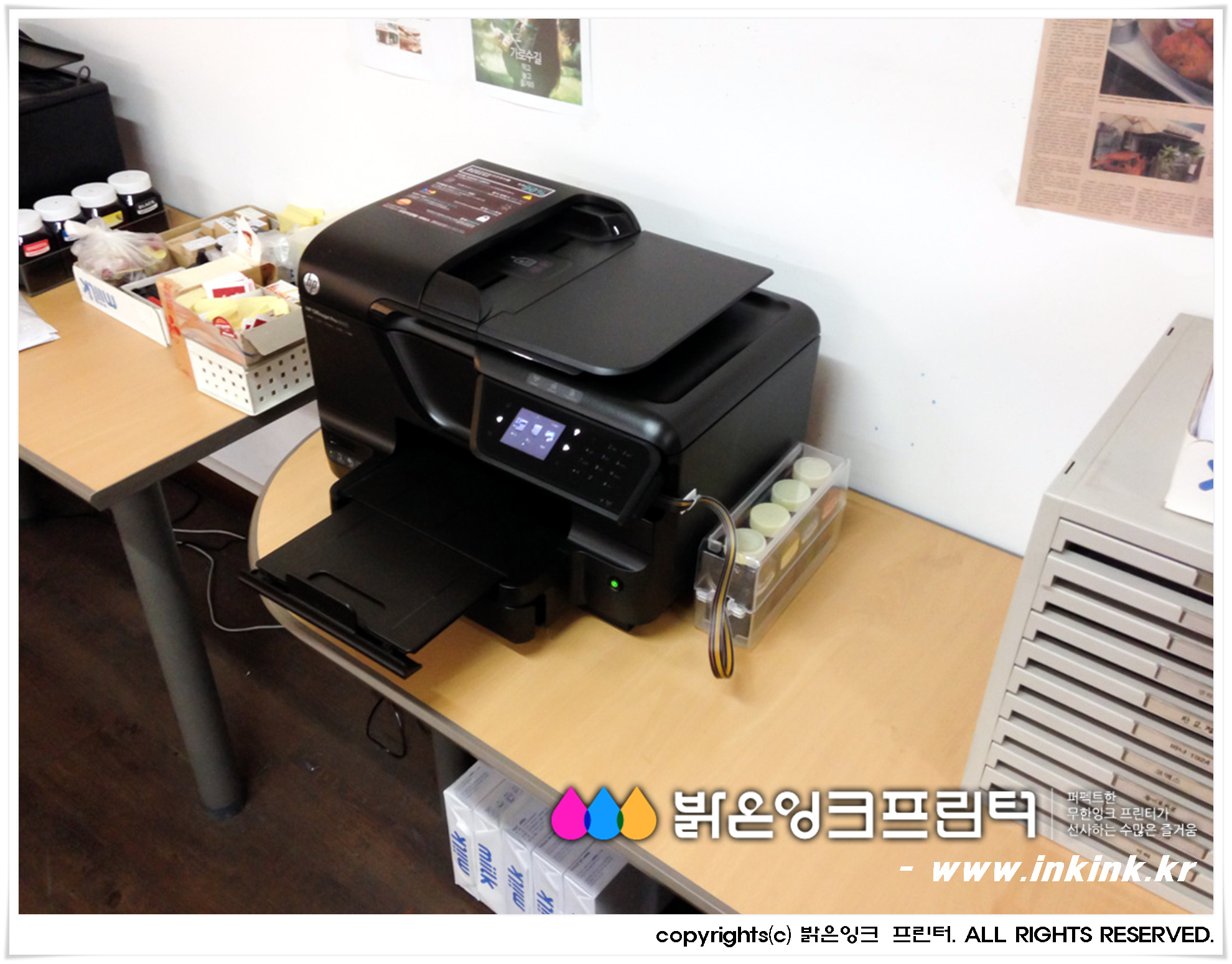 °³Æ÷µ¿¿¡ À§Ä¡ÇÑ ¹Ì±×¸°¿¡ HP OFFICEJET 8600 ¹«ÇÑÀ×Å© º¹Çձ⸦ ¼³Ä¡ÇØ µå¸°µÚ, º¹Çձ⸦ Ä«¸Þ¶ó¿¡ ´ã¾ÆºÃ½À´Ï´Ù. ¹àÀºÀ×Å© ÇÁ¸°Å͸¦ ±¸ÀÔÇØ ÁֽŠ°í°´´Ô²² ±íÀº °¨»çµå¸®¸ç, Á¤Á÷ÇÑ Á¦Ç°, ¿Ã¹Ù¸¥ ¼ºñ½º·Î °í°´´ÔÀÇ ¹ÏÀ½¿¡ º¸´äÇϰڽÀ´Ï´Ù.