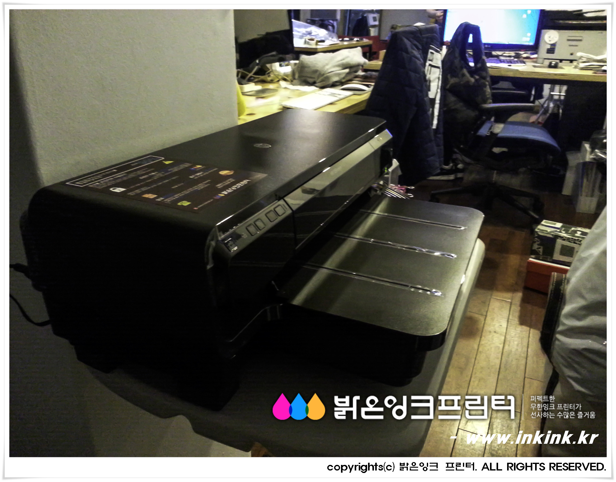 ¼º³»µ¿¿¡ À§Ä¡ÇÑ PK&C¿¡ HP OFFICEJET 7110 A3 ¹«ÇÑÀ×Å© ÇÁ¸°Å͸¦ ¼³Ä¡ÇØ µå¸°µÚ, ÇÁ¸°Å͸¦ Ä«¸Þ¶ó¿¡ ´ã¾ÆºÃ½À´Ï´Ù. ¹àÀºÀ×Å© ÇÁ¸°Å͸¦ ±¸ÀÔÇØ ÁֽŠ°í°´´Ô²² ±íÀº °¨»çµå¸®¸ç, Á¤Á÷ÇÑ Á¦Ç°, ¿Ã¹Ù¸¥ ¼ºñ½º·Î °í°´´ÔÀÇ ¹ÏÀ½¿¡ º¸´äÇϰڽÀ´Ï´Ù.
