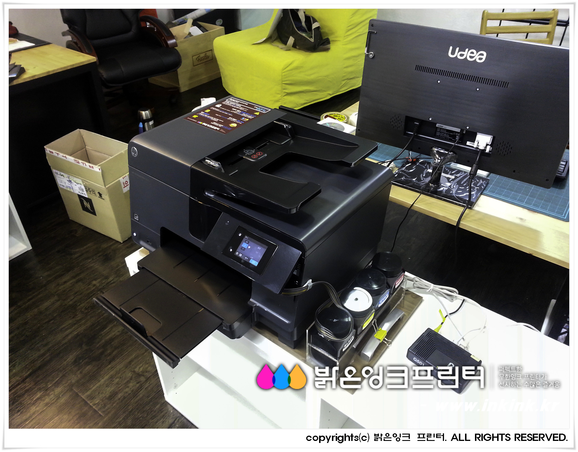 û´ãµ¿¿¡ À§Ä¡ÇÑ ÇÁ¶óÀÓ°øÀÎÁß°³ »ç¹«¼Ò¿¡ HP OFFICEJET 8610 ¹«ÇÑÀ×Å© º¹Çձ⸦ ¼³Ä¡ÇØ µå¸°µÚ, º¹Çձ⸦ Ä«¸Þ¶ó¿¡ ´ã¾ÆºÃ½À´Ï´Ù. ¹àÀºÀ×Å© ÇÁ¸°Å͸¦ ±¸ÀÔÇØ ÁֽŠ°í°´´Ô²² ±íÀº °¨»çµå¸®¸ç, Á¤Á÷ÇÑ Á¦Ç°, ¿Ã¹Ù¸¥ ¼ºñ½º·Î °í°´´ÔÀÇ ¹ÏÀ½¿¡ º¸´äÇϰڽÀ´Ï´Ù.