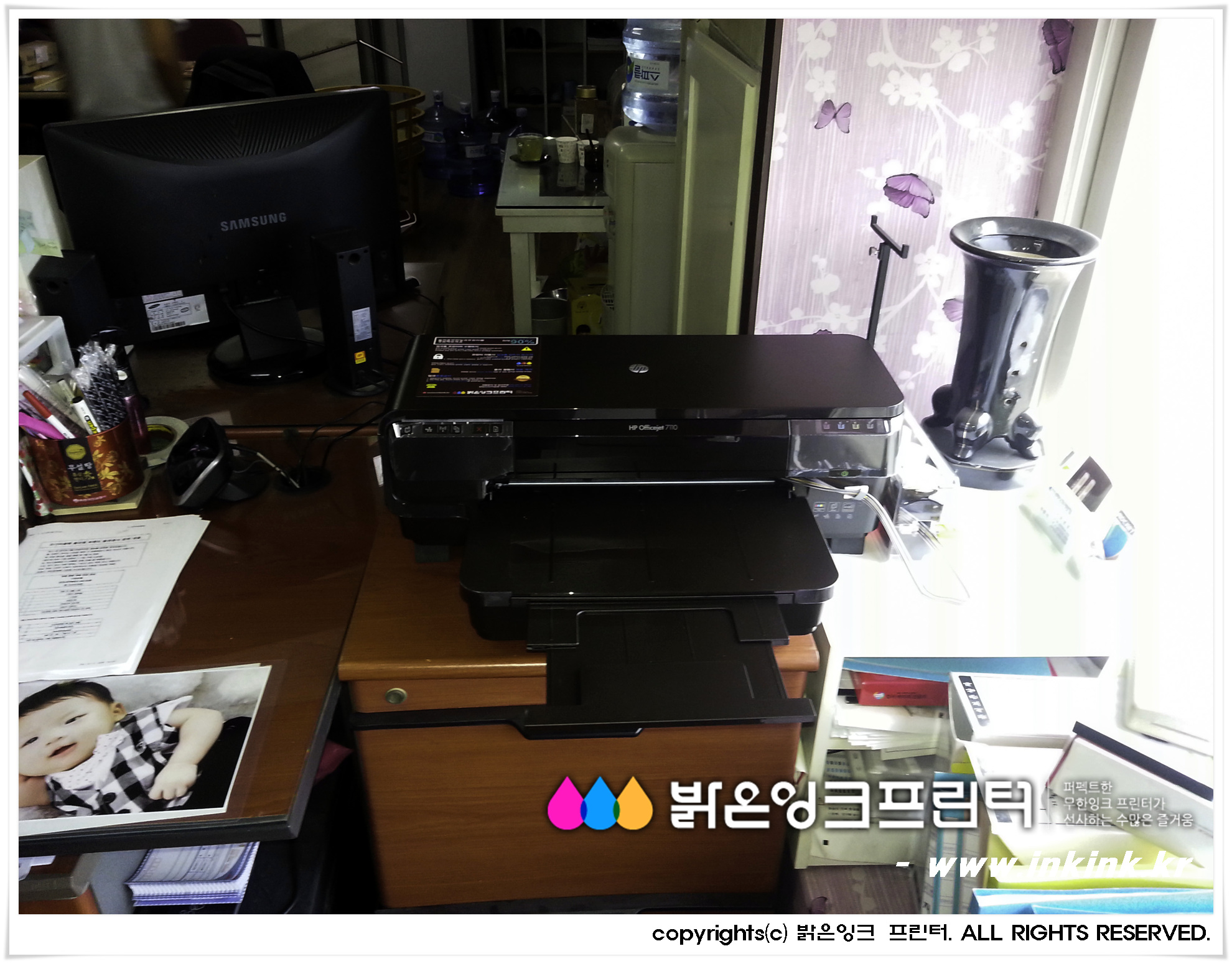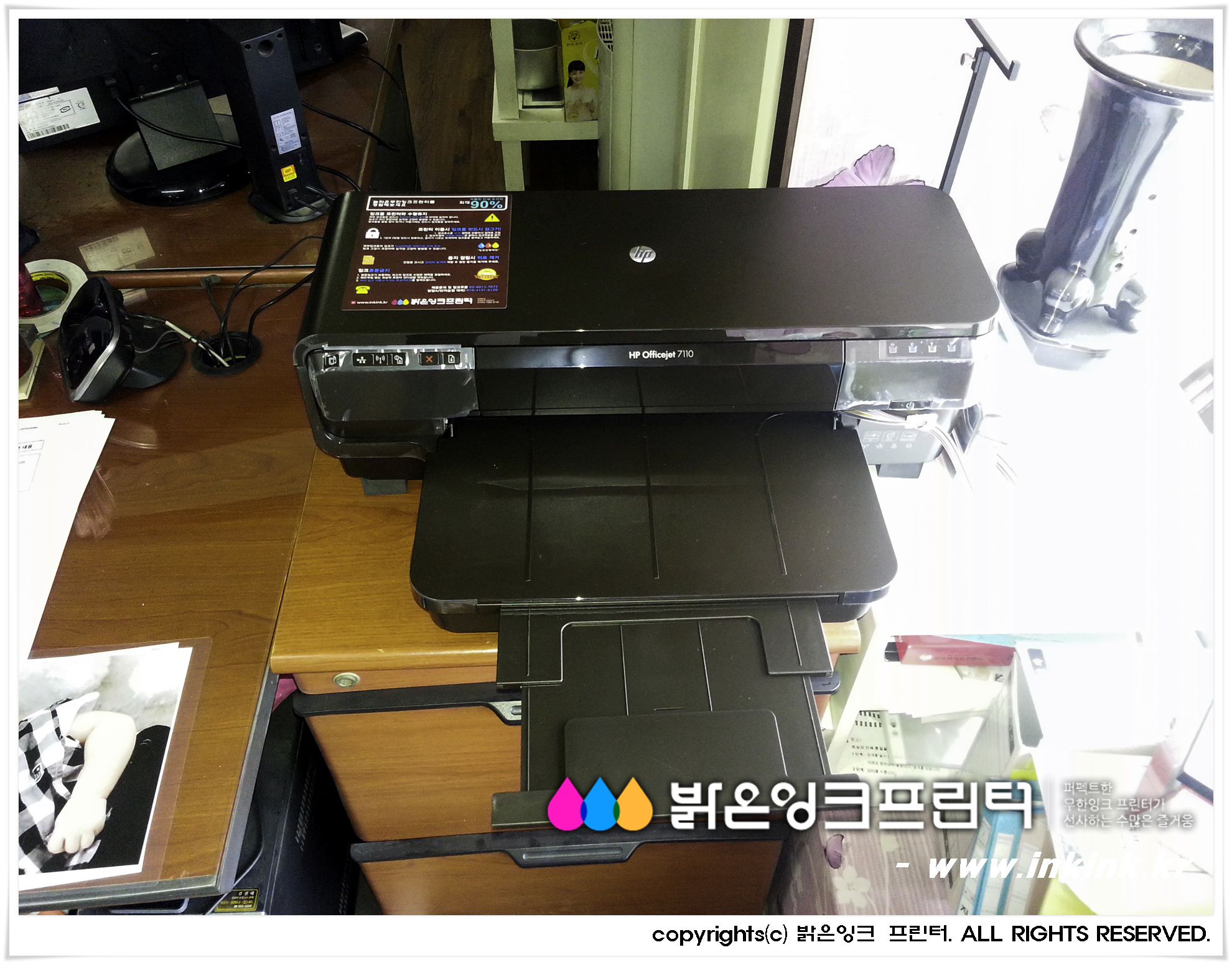 ±èÆ÷¿¡ À§Ä¡ÇÑ ¿¡ÀÌÅõ¿¡ÀÌ¿¡ HP OFFICEJET 7110 A3 ¹«ÇÑÀ×Å© ÇÁ¸°Å͸¦ ¼³Ä¡ÇØ µå¸°µÚ, ÇÁ¸°Å͸¦ Ä«¸Þ¶ó¿¡ ´ã¾ÆºÃ½À´Ï´Ù. ¹àÀºÀ×Å© ÇÁ¸°Å͸¦ ±¸ÀÔÇØ ÁֽŠ°í°´´Ô²² ±íÀº °¨»çµå¸®¸ç, Á¤Á÷ÇÑ Á¦Ç°, ¿Ã¹Ù¸¥ ¼ºñ½º·Î °í°´´ÔÀÇ ¹ÏÀ½¿¡ º¸´äÇϰڽÀ´Ï´Ù.